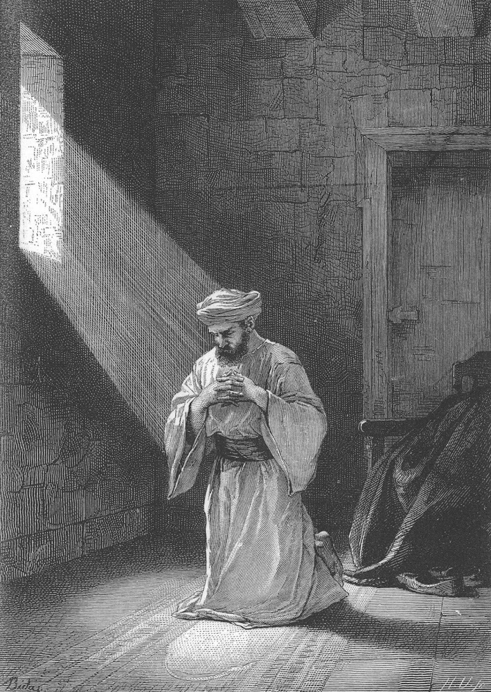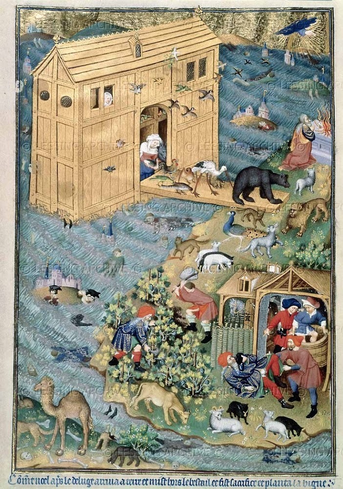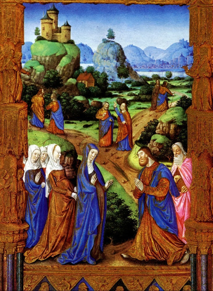 Two of the Temptations of Jesus in the Desert by Satan and Jesus served by the Angels (Master François, Miniature; from St Augustine’s “La Cité de Dieu”; manuscript MMW 10 A 11; Koninklijke Bibliotheek, The Hague)