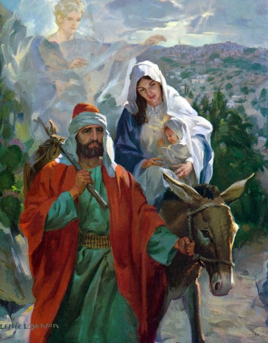 Après leur départ, voici que l'Ange du Seigneur apparaît en songe à Joseph et lui dit : « Lève-toi, prends avec toi l'enfant et sa mère, et fuis en Égypte ; et restes-y jusqu'à ce que je te dise. Car Hérode va rechercher l'enfant pour le faire périr. ».