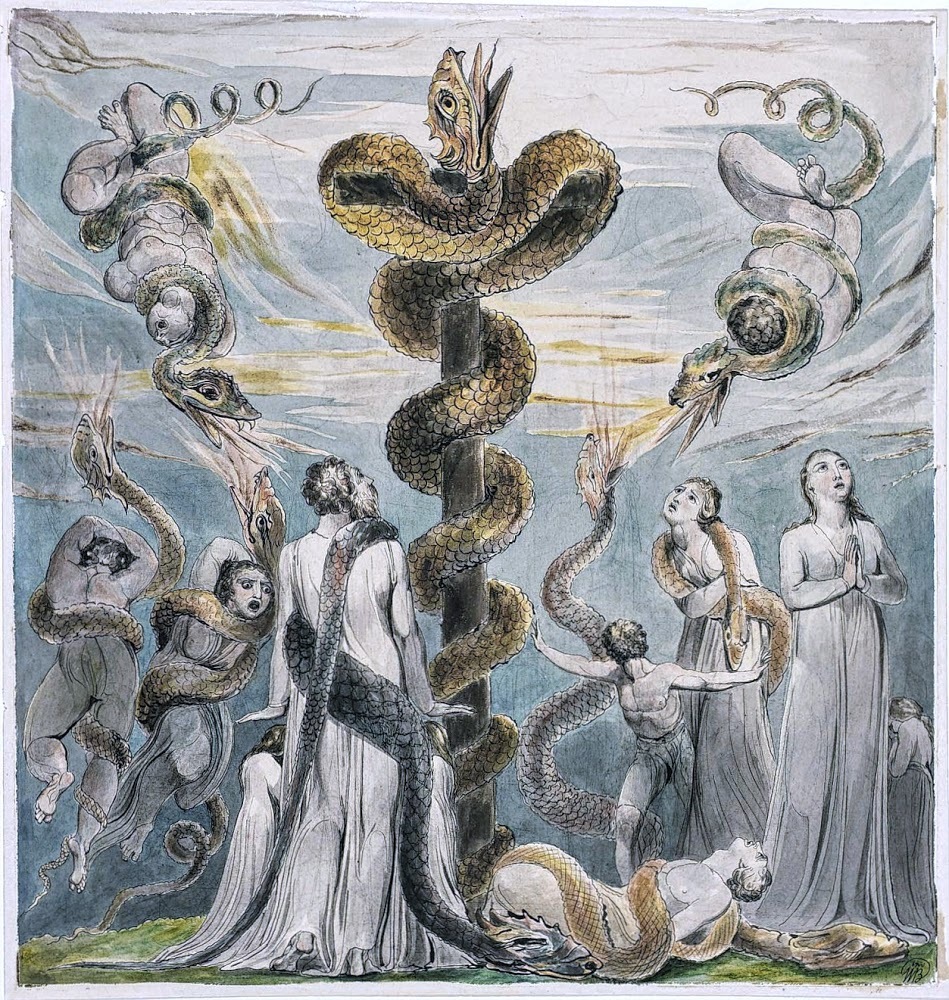 In punishment the LORD sent among the people saraph serpents, which bit the people so that many of them died. Then the people came to Moses and said, "We have sinned in complaining against the LORD and you. Pray the LORD to take the serpents from us." So Moses prayed for the people, and the LORD said to Moses, "Make a saraph and mount it on a pole, and if anyone who has been bitten looks at it, he will recover." Moses accordingly made a bronze serpent and mounted it on a pole, and whenever anyone who had been bitten by a serpent looked at the bronze serpent, he recovered.
